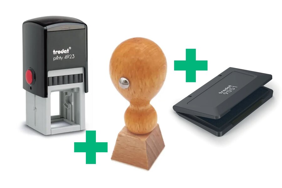 This set combines the best of two eras for exceptional markings. It includes the Trodat Printy 4923 stamp, a symbol of modernity and efficiency, as well as its wooden predecessor in the size of 30x30mm, embodying tradition and authenticity. Additionally, you benefit from the Trodat 9051 stamp pad for precise and uniform application of stamp ink. A perfect blend of old and new for markings that endure over time. Order now and leave your sign with elegance and reliability.