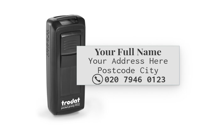 The Trodat Pocket 9512 stamp offers comprehensive personalisation possibilities, from simple contact details to complex layouts incorporating logos and professional certifications. Text customisation supports multiple font options, whilst the five-line capacity allows for detailed information including names, titles, addresses, telephone numbers, and email addresses.